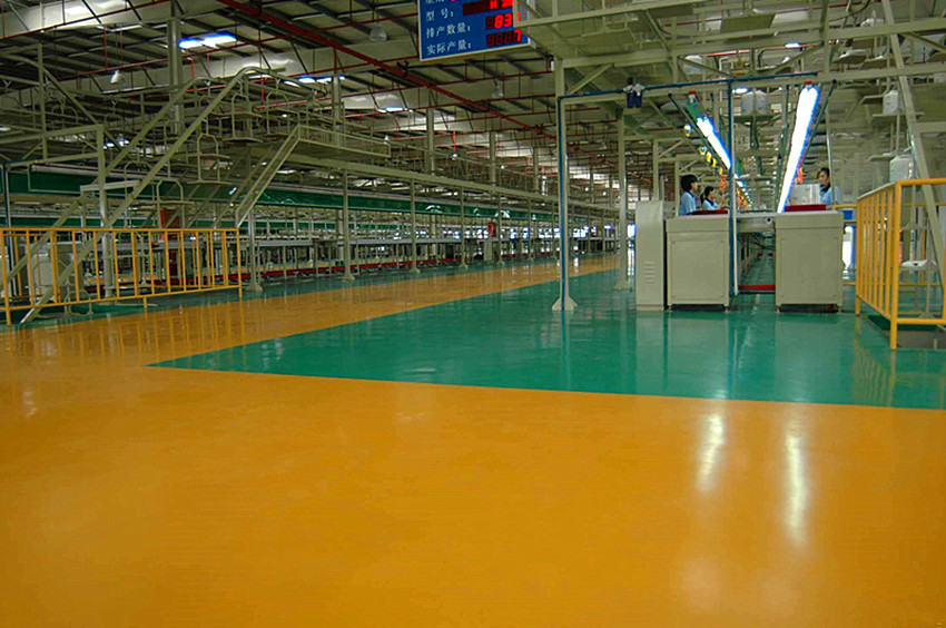 7、可載重地坪漆:這類地坪漆與混凝土基層的黏結(jié)強(qiáng)度高,拉伸強(qiáng)度和硬度均高,并具有很好的抗沖擊性能,承載力和耐磨性。適應(yīng)于需要有載重車輛和叉車行走的工廠車間和倉庫等地坪涂裝。